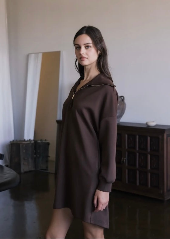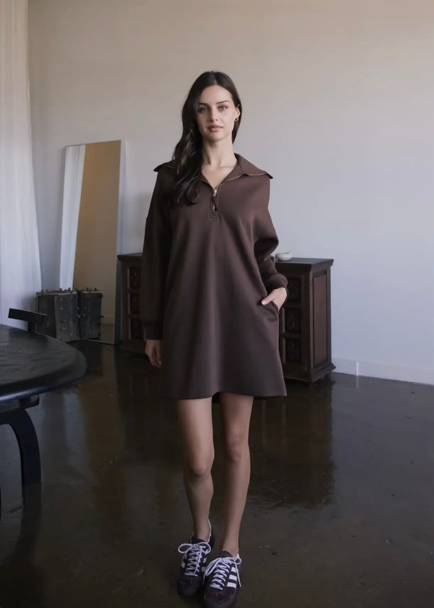 Cocoa Butter Soft Quarter Zip Long Sleeve Dress