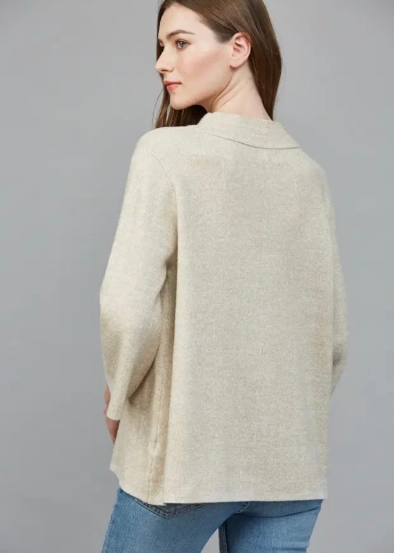 Cream/Gold Metallic Mock Neck Bell Sleeve Sweater