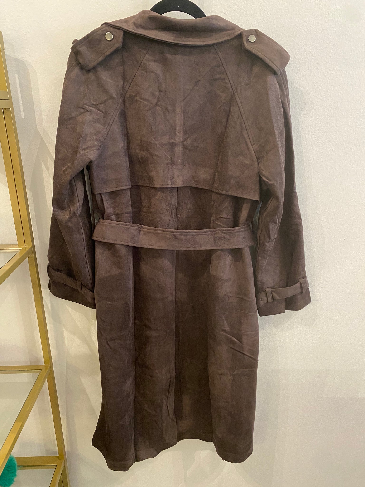 Dark Brown Suede Tie Waist Trench Coat