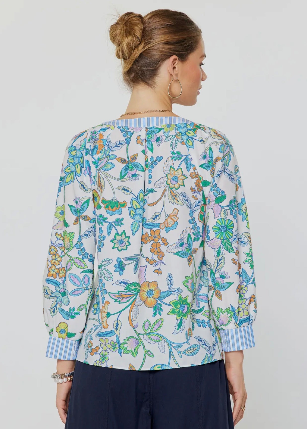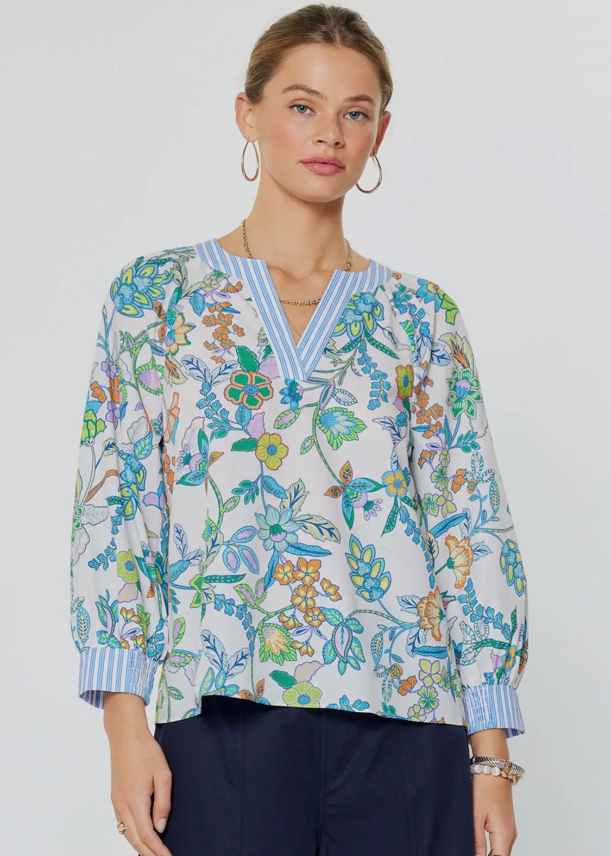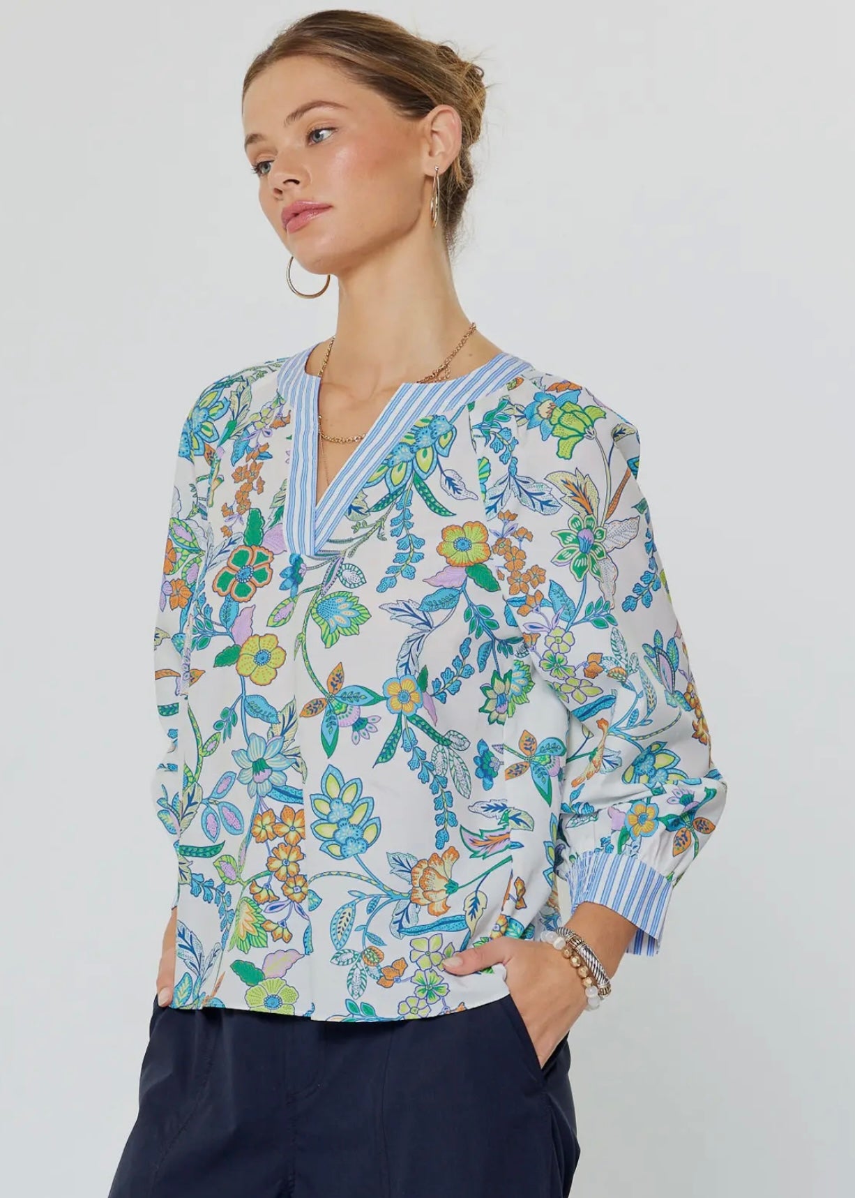 Paisley Printed Contrast Trim Split Neck Blouse