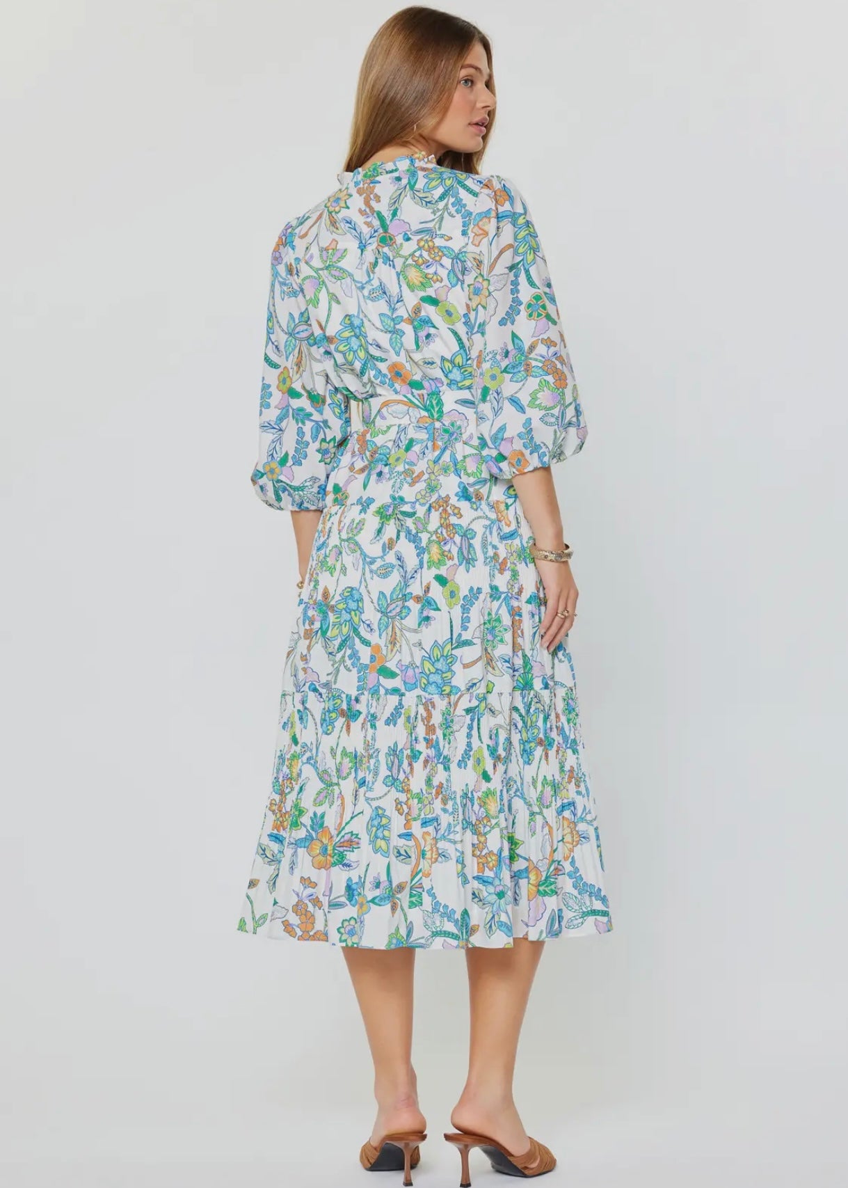 Paisley Printed Tiered Belted Midi Dress
